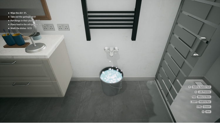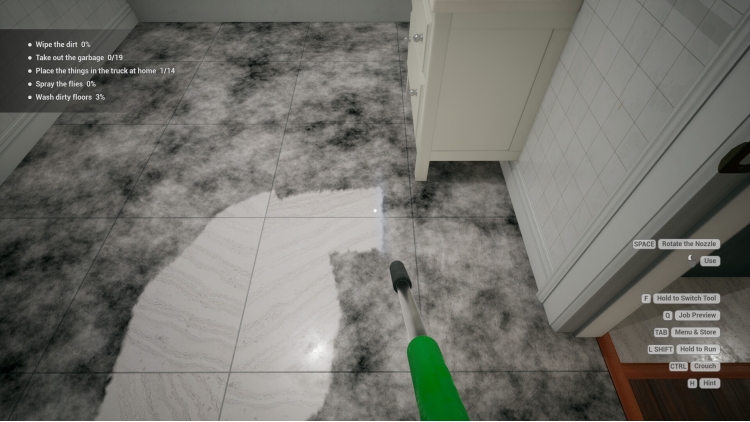 İster sadece rahatlamak için oyna, ister tüm görevleri eksiksiz tamamlayıp temizlik ustası unvanını kap – oyun seni nasıl istersen öyle oynamaya bırakıyor. Mopla yerleri sil, süngerle yüzeyleri temizle, bulaşıkları makineye diz, çöpü topla, sinekleri ilaçla, halıları süpür, eşyaları düzenle ve gerekiyorsa basınçlı yıkamayla inatçı kirlerin kökünü kazı!