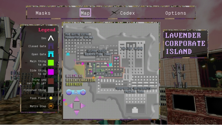 Dünyanın kendisi hikayenin ta kendisi. Anakara'dan gelen kötü bir grup olan Lavender Corporation, adayı ve üzerinde yaşayan herkesi kontrol etmek için uzaylı bir medeniyetle işbirliği yapıyor. Karşı koymak için görevler kabul edecek, bağlantılar kuracak ve farklı yeteneklere sahip maskeler bulacaksınız.