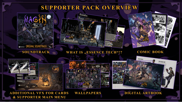 Supporter Pack, Magin: The Rat Project Stories'in geliştiricilerini desteklemek için elinden gelenin fazlasını yapmak isteyen oyunculara hazırlanmış DLC ve ürün koleksiyonu içerir.