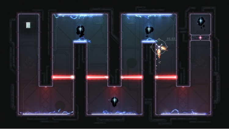 Solus dört yöne de hareket edebilir - ve aralarındaki her yere. Ancak, ölmekte olan dünyanın kalbine ulaşma yarışını kazanmanın anahtarı Uçuş Yolu Sistemi'nde ustalaşmaktır: Hızı en üst düzeye çıkarmak için iticileri seçici olarak kapatın veya neredeyse imkansız dönüşler yapmak ve puanınızdan saniyeler kazanmak için onlarla fren yapın.