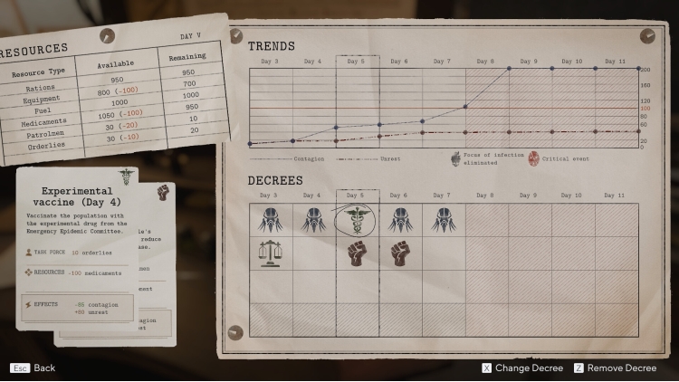Her yeni gün için mücadele edin. Kendi kurallarınızı uygulayarak kasabanın hayatta kalmasını sağlayın: karantinaları uygulayın, değerli ilaçlara el koyun, nüfusu aşılayın, isyanları bastırın, devriyeler görevlendirin ve sokağa çıkma yasakları ilan edin.