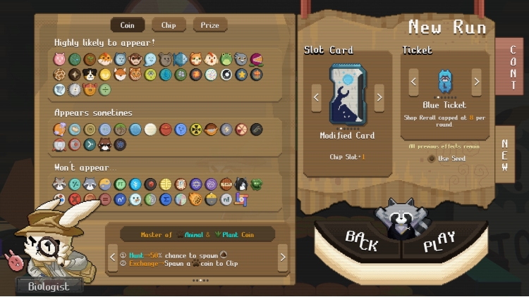 Her biri kendine özgü temada jeton setine ve oynanış tarzına sahip olan çeşitli karakterden biri olarak oyna. Hesaplama tabanlı kombolarda usta olan doyumsuz bir rakun yönetici rolünü üstlen veya hayvan temalı jetonlarda uzmanlaşmış olan acayip bir biyolog olarak oyna. Her karakter, tamamen farklı ve değişik bir oynanış tarzı sunar.
