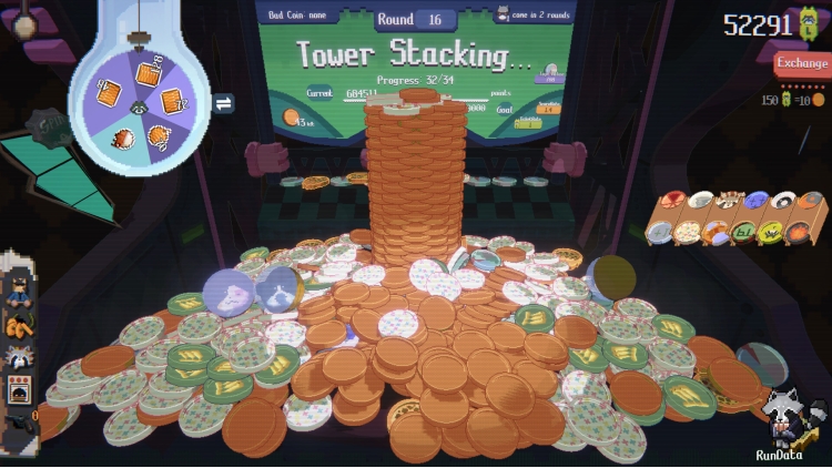 RACCOIN, inanılmaz derecede tatmin edici komboları tetiklemek için özel jetonlar ile güçlü öğeleri birleştirdiğin roguelike türünde bir deste oluşturma oyunudur. Parıl parıl jeton kuleleri oluştur, şanslı çarkı çevir ve tüm jetonlar patır patır yağana kadar makineyi salla.