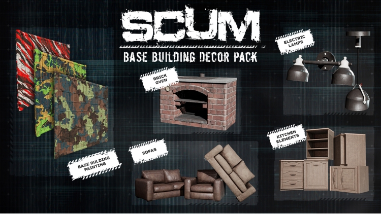SCUM Üssü Dekorasyon Paketi ile tanışın! Bu kozmetik DLC'de, oyunda bulunan mobilyaların lüks versiyonlarıyla üssünüzün içini yenileyin, boya desenleriyle yepyeni bir görünüm kazandırın ve geçen herkese kimin adam olduğunu gösterin!