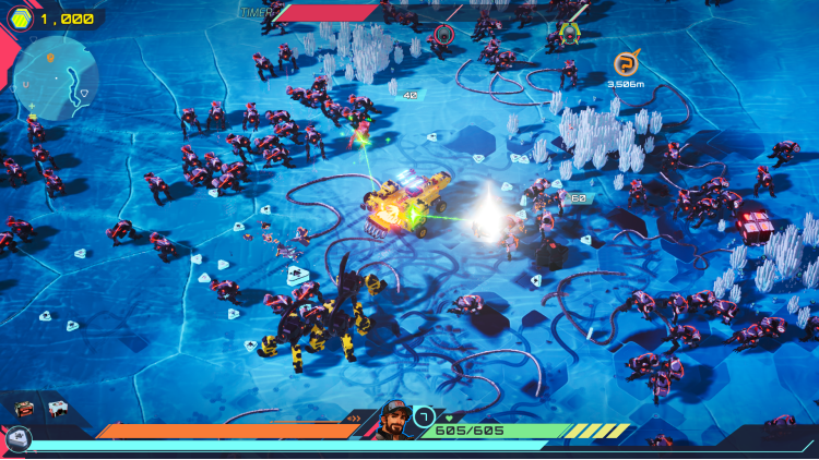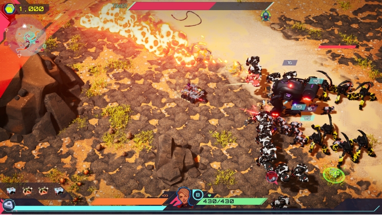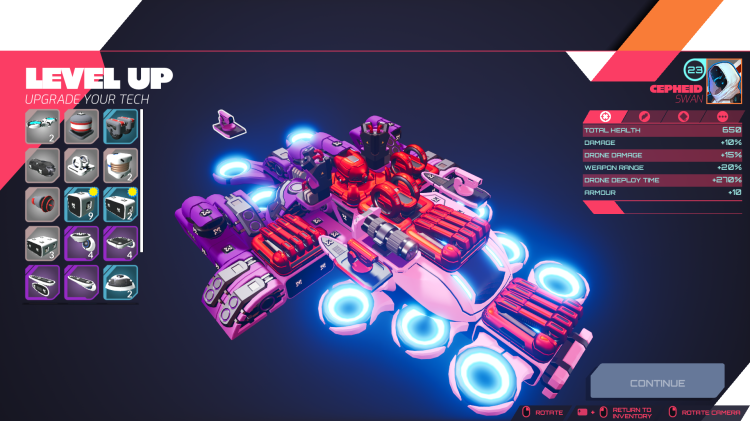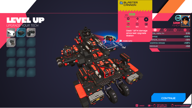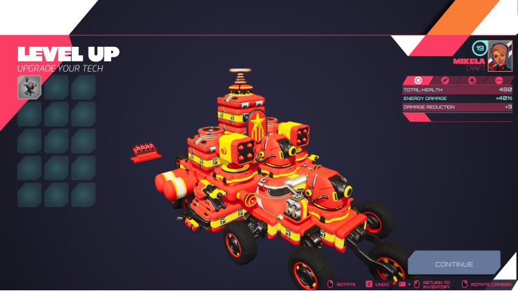 Teknolojik aracını tekerlek, güçlendirici, elektrikli testere ve yörünge lazeri gibi blok bileşenlerinden oluştur; bu bileşenler aracın nasıl hareket edeceğini ve savaşacağını belirler. İlerledikçe yeni blokların kilidini açıp gittikçe daha güçlü ve stratejik hâle gelen yapılar oluştur.