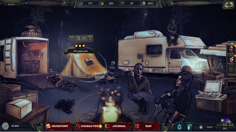 - Yolculukta hayatta kalabilmek için yiyecek, su, yakıt ve teçhizat toplayın. Herkesin varış noktasına güvenli bir şekilde ulaşmasını sağlamak için kaynaklarınızı yönetin.