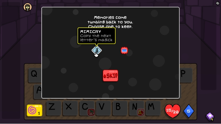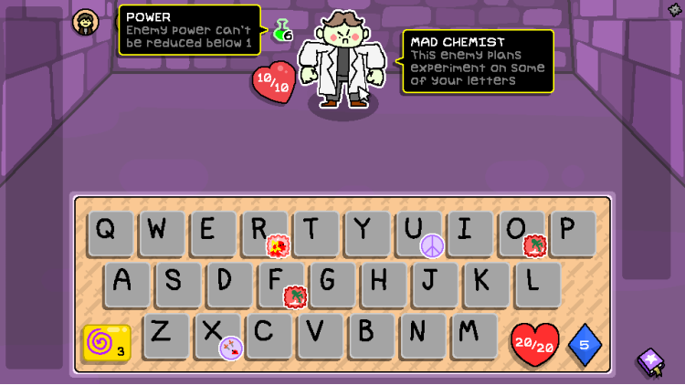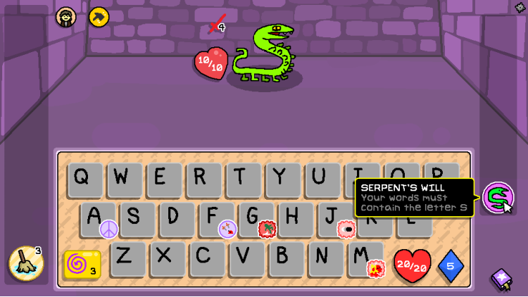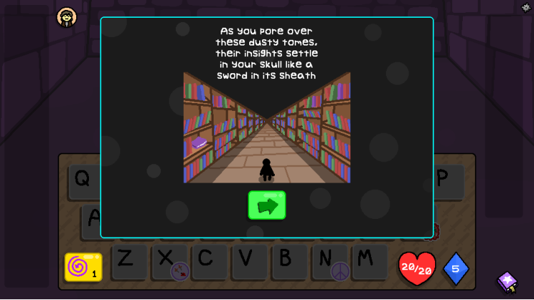 Her katın başında, yolunuzu oluşturmak için bir kelime yaratacaksınız. Cephaneliğinizi güçlendiren, sağlığınızı yenileyen veya Büyü zarlarınızı değiştiren odalar arasında seçim yapın. Her şeye sahip olabilirsiniz… eğer kelime dağarcığınız yeterince keskinse.