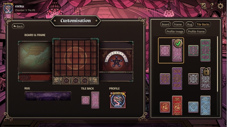 - Oyun tahtası, profil, halı ve karo özelleştirmesi